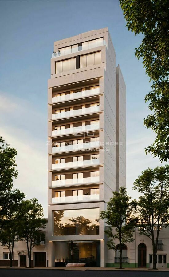 El edificio se desarrolla en subsuelo, planta baja, 12 pisos y terraza accesible con parrilla.